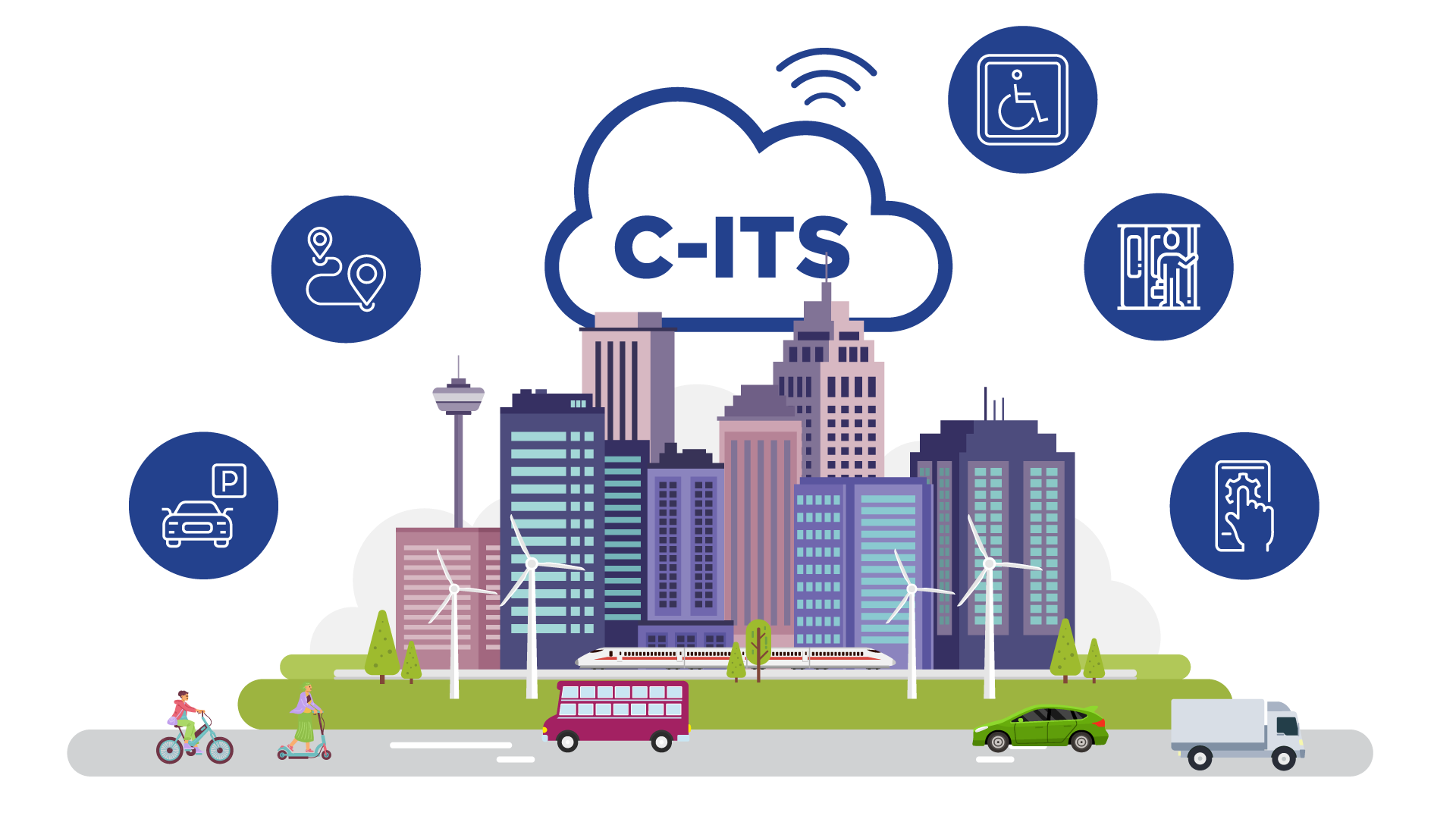 Alchemiser has created a series of informative infographics for C-MobILE, with the goal of assisting road users and fleet managers in gaining a deeper understanding of the specific features and details of C-ITS. These visually engaging graphics serve as explanatory tools to enhance comprehension and provide valuable insights into the intricacies of C-ITS for the target audience.